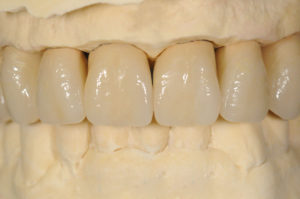 Korony i mosty w naszej pracowni wykonywane są zarówno przy odbudowach na implantach, jak i na filarach zębowych. Do wyboru mają Państwo metale nieszlachetne, półszlachetne i szlachetne. W części ceramicznej osiągamy znakomity efekt estetyczny stosując najwyższej jakości ceramikę o wysokiej wytrzymałości mechanicznej i stabilności koloru. Dzięki indywidualnemu doborowi koloru i indywidualnej charakteryzacji potrafimy przenieść na materiał ceramiczny wrażenia barwne, szczegóły struktur wewnętrznych zębów, ich połysk, grę światła, opalescencję.